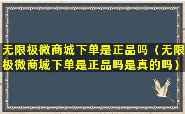 无限极微商城下单是正品吗(无限极微商城下单是正品吗是真的吗)