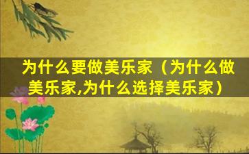为什么要做美乐家(为什么做美乐家,为什么选择美乐家)