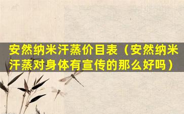 安然纳米汗蒸价目表(安然纳米汗蒸对身体有宣传的那么好吗)