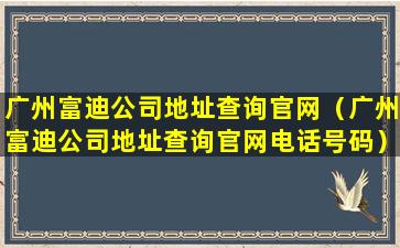 2、广州富迪公司地址查询官网电话号码