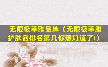 2、无限极萃雅护肤品排名第几?你想知道了!