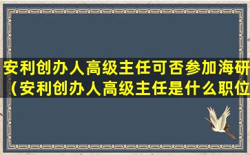 安利创办人高级主任可否参加海研(安利创办人高级主任是什么职位)