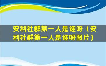 安利社群第一人是谁呀(安利社群第一人是谁呀图片)