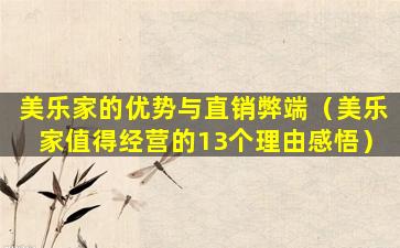 美乐家值得经营的13个理由感悟
