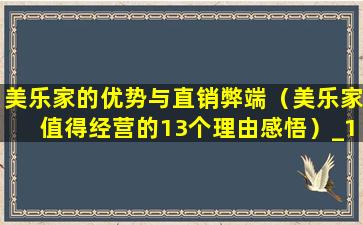 美乐家的优势与直销弊端(美乐家值得经营的13个理由感悟)