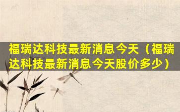 福瑞达科技最新消息今天(福瑞达科技最新消息今天股价多少)