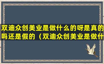 双迪众创美业是做什么的呀是真的吗还是假的(双迪众创美业是做什么的呀是真的吗还是假的啊)