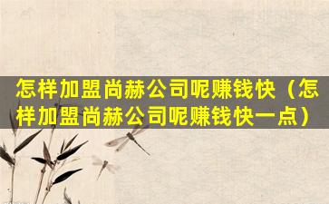 怎样加盟尚赫公司呢赚钱快(怎样加盟尚赫公司呢赚钱快一点)