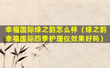 幸福国际绿之韵怎么样(绿之韵幸福国际四季护理仪效果好吗)