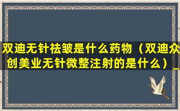 双迪无针祛皱是什么药物(双迪众创美业无针微整注射的是什么)