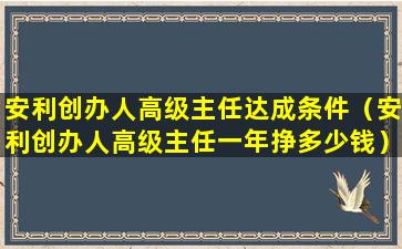 安利创办人高级主任达成条件(安利创办人高级主任一年挣多少钱)