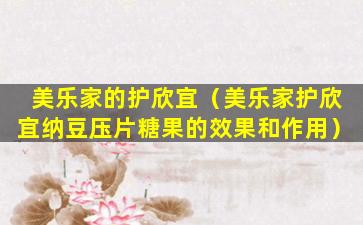 美乐家的护欣宜(美乐家护欣宜纳豆压片糖果的效果和作用)