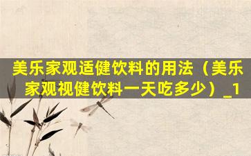 美乐家观适健饮料的用法(美乐家观视健饮料一天吃多少)
