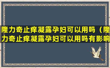 2、隆力奇止痒凝露孕妇可以用吗有影响吗