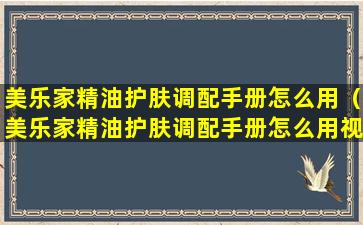 美乐家精油护肤调配手册怎么用(美乐家精油护肤调配手册怎么用视频)