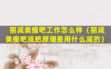 丽减美瘦吧工作怎么样(丽减美瘦吧减肥原理是用什么减的)