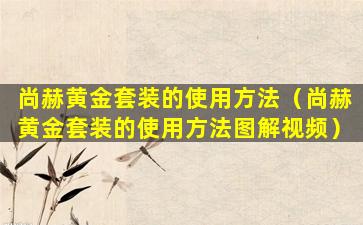尚赫黄金套装的使用方法(尚赫黄金套装的使用方法图解视频)