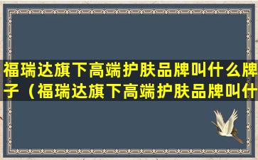 福瑞达旗下高端护肤品牌叫什么牌子(福瑞达旗下高端护肤品牌叫什么牌子的)