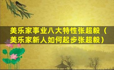 美乐家事业八大特性张超毅(美乐家新人如何起步张超毅)