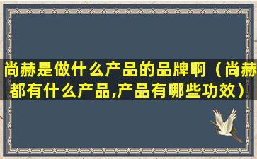 尚赫是做什么产品的品牌啊(尚赫都有什么产品,产品有哪些功效)