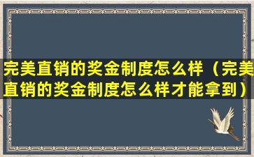 完美直销的奖金制度怎么样(完美直销的奖金制度怎么样才能拿到)
