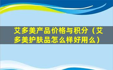 艾多美产品价格与积分(艾多美护肤品怎么样好用么)