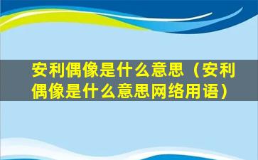安利偶像是什么意思(安利偶像是什么意思网络用语)