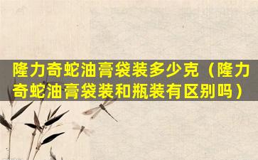 隆力奇蛇油膏袋装多少克(隆力奇蛇油膏袋装和瓶装有区别吗)