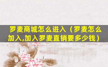 罗麦商城怎么进入(罗麦怎么加入,加入罗麦直销要多少钱)