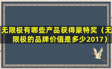 无限极有哪些产品获得蒙特奖(无限极的品牌价值是多少2017)