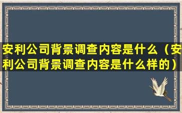 安利公司背景调查内容是什么(安利公司背景调查内容是什么样的)