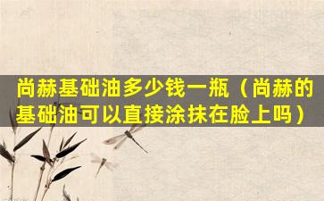 尚赫基础油多少钱一瓶(尚赫的基础油可以直接涂抹在脸上吗)