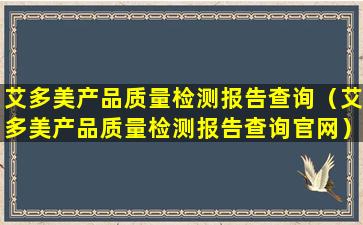 艾多美产品质量检测报告查询(艾多美产品质量检测报告查询官网)