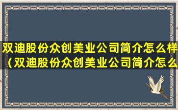 双迪股份众创美业公司简介怎么样(双迪股份众创美业公司简介怎么样啊)