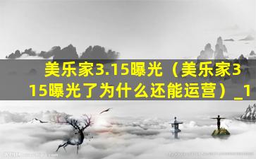 美乐家3.15曝光(美乐家315曝光了为什么还能运营)