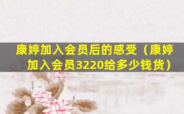 康婷加入会员后的感受(康婷加入会员3220给多少钱货)