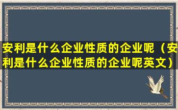安利是什么企业性质的企业呢(安利是什么企业性质的企业呢英文)