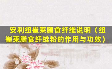 安利纽崔莱膳食纤维说明(纽崔莱膳食纤维粉的作用与功效)