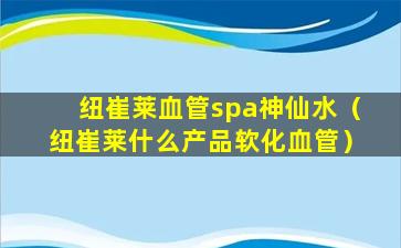 纽崔莱血管spa神仙水(纽崔莱什么产品软化血管)