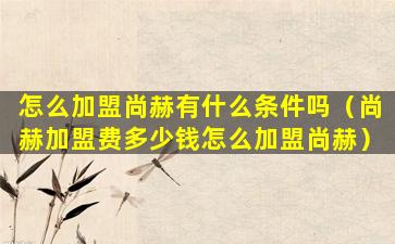 怎么加盟尚赫有什么条件吗(尚赫加盟费多少钱怎么加盟尚赫)