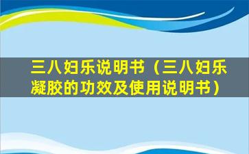 三八妇乐说明书(三八妇乐凝胶的功效及使用说明书)