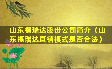 山东福瑞达股份公司简介(山东福瑞达直销模式是否合法)