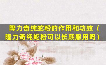 隆力奇纯蛇粉的作用和功效(隆力奇纯蛇粉可以长期服用吗)