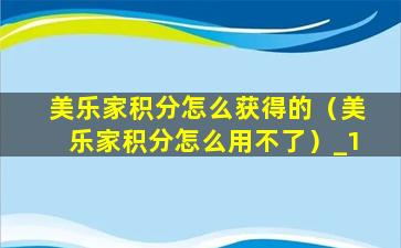 美乐家积分怎么获得的(美乐家积分怎么用不了)