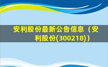 这些公告信息图片为投资者提供了安利股份最新财务状况、运营情况和重大事件的及时了解。投资者可通过中国证券报官方网站或其他权威信息渠道获取更多相关信息。