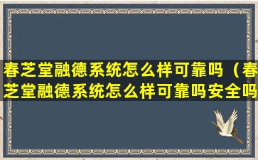 春芝堂融德系统怎么样可靠吗(春芝堂融德系统怎么样可靠吗安全吗)