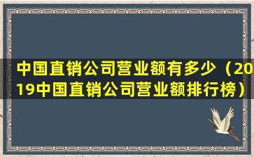 中国直销公司营业额有多少(2019中国直销公司营业额排行榜)