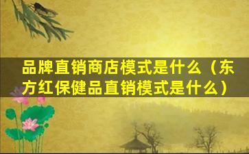 品牌直销商店模式是什么(东方红保健品直销模式是什么)