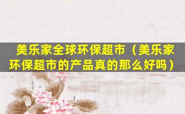 美乐家全球环保超市(美乐家环保超市的产品真的那么好吗)