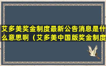 1、艾多美奖金制度最新公告消息是什么意思啊